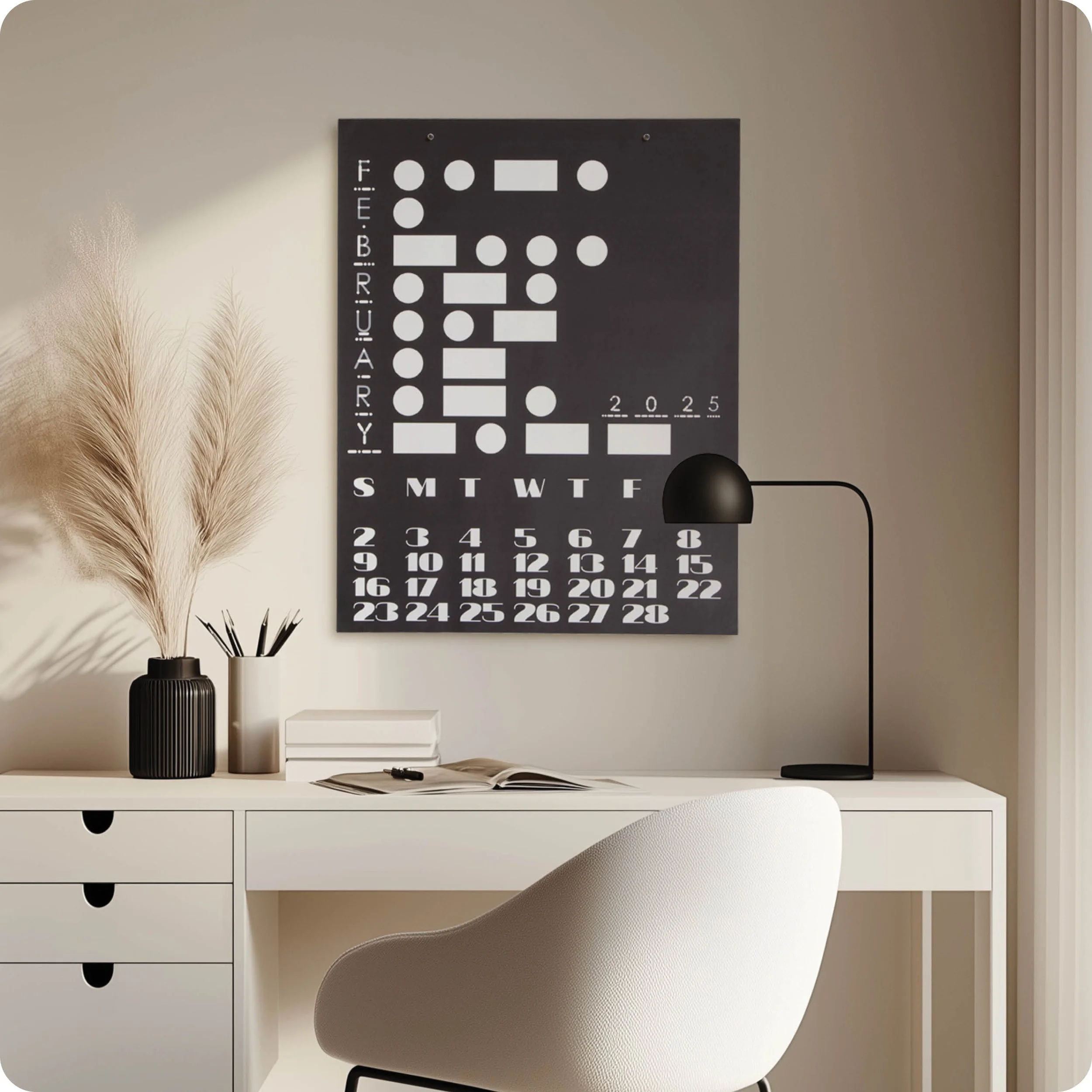 A writeable with Morse code style. Generously sized boxes. Includes holidays + moon phases. 24.75" x 19.25".